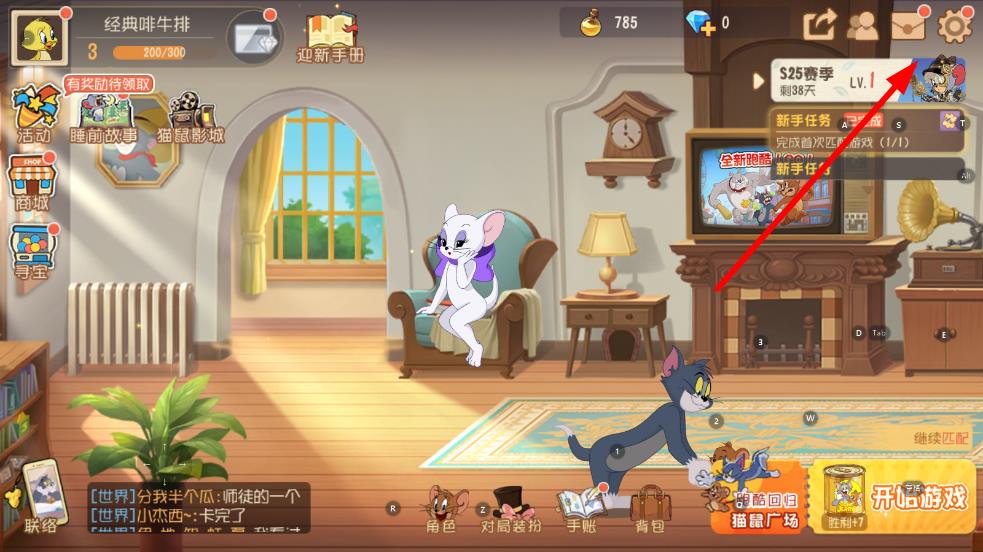 1、打開貓和老鼠游戲主界面,點擊右上角齒輪圖標(biāo),進入設(shè)置界面。