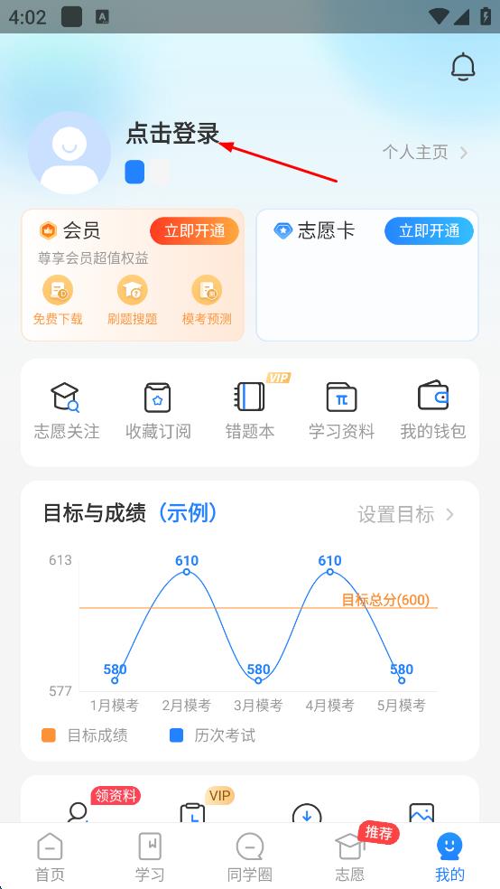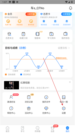 1、打開高考直通車APP,進(jìn)入個(gè)人頁面后點(diǎn)擊設(shè)置選項(xiàng)。