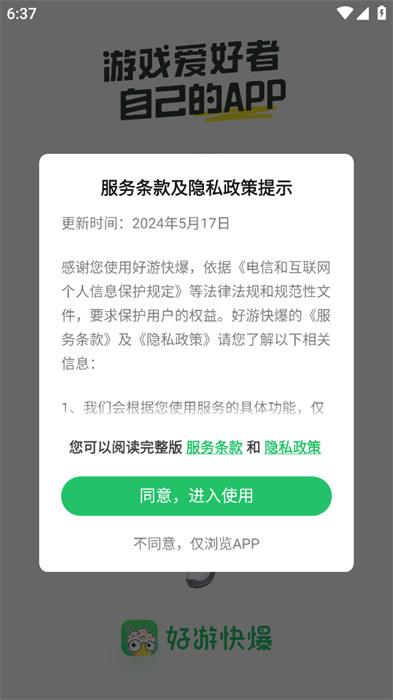 1、打開軟件之后閱讀隱私政策和用戶協(xié)議,點(diǎn)擊同意之后就能進(jìn)入到軟件;