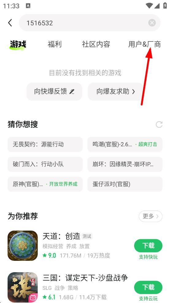 3、在搜索結(jié)果頁(yè)面,點(diǎn)擊用戶&廠商選項(xiàng)卡,即可查找并找到對(duì)應(yīng)的好友。