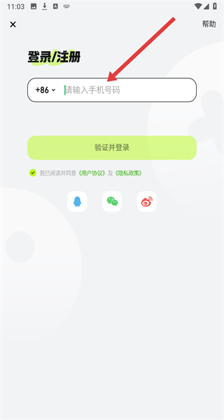 3、在進(jìn)入到登錄頁(yè)面中,可以點(diǎn)擊輸入框填寫手機(jī)號(hào)碼,以便獲取驗(yàn)證碼進(jìn)行登錄。