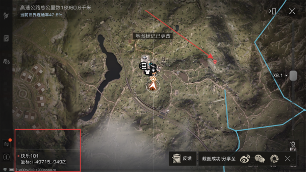 3、大地圖左下角能看當前坐標,移動時更新,還可點擊地圖標記目標坐標。