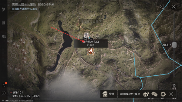 2、在大地圖查看標識,點擊自身位置標識如直升機出入口獲取地點名。