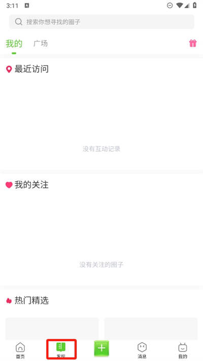 2、進入軟件后進入發(fā)現(xiàn)頁面即可查看關(guān)注的動態(tài)信息,還有最近訪問和關(guān)注動態(tài)等信息查看;