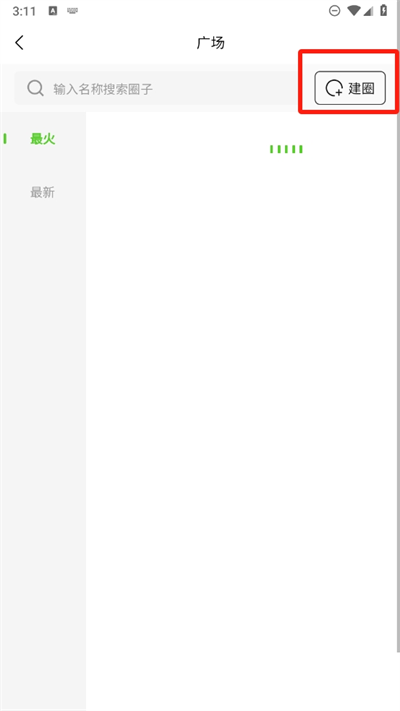 4、然后進入廣場后我們就可以看到最新或者最熱的圈子,同時在最右邊可以看到有建圈點擊進入即可建立了。