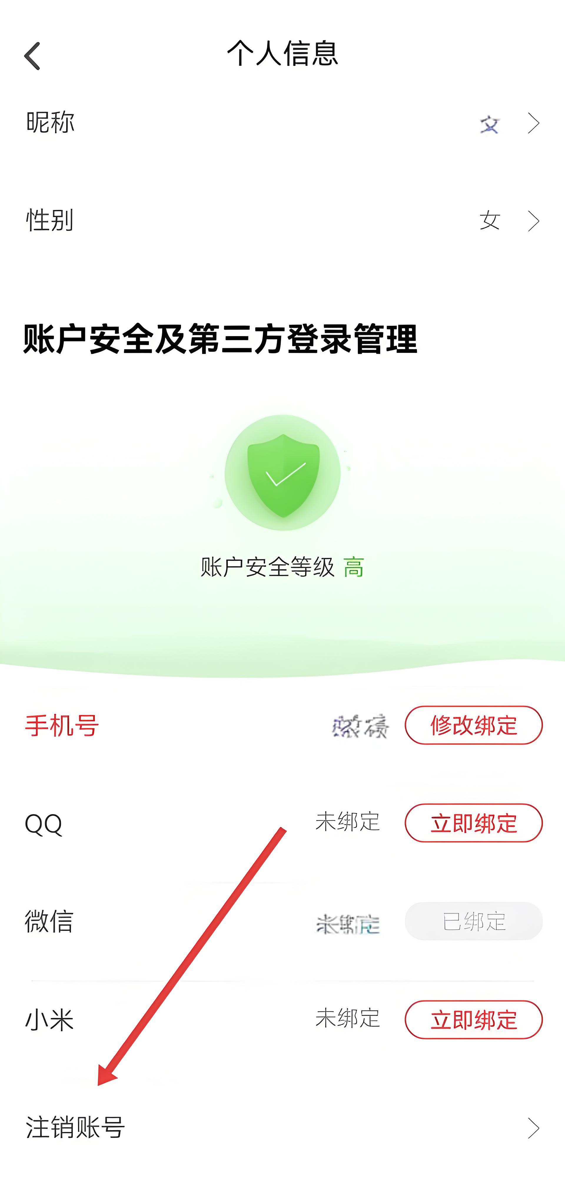 3、在個(gè)人信息頁(yè)面,點(diǎn)擊注銷賬號(hào)的選項(xiàng),進(jìn)入賬號(hào)安全的頁(yè)面。