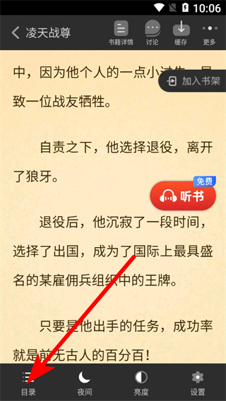 3、在小說(shuō)閱讀頁(yè)面,點(diǎn)擊左下角目錄選項(xiàng),彈出目錄列表。