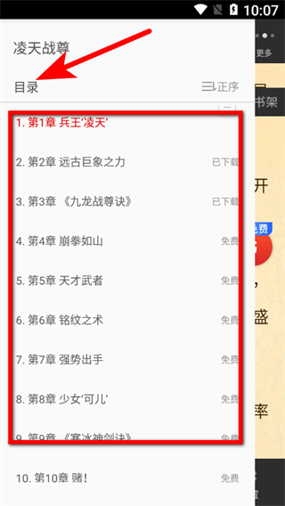 4、在目錄列表中,即可查看小說(shuō)各章節(jié)的目錄內(nèi)容。
