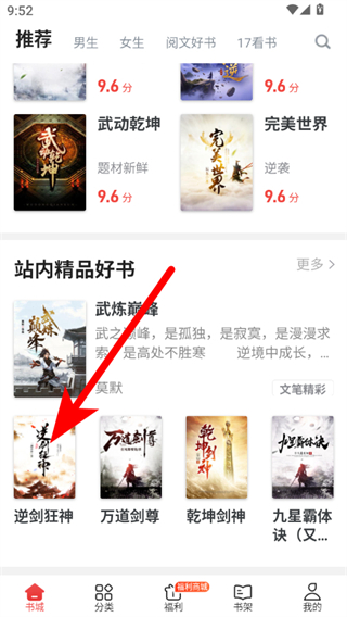 1、在追書神器書城頁(yè)面,選擇要分享的小說(shuō),進(jìn)入小說(shuō)詳情頁(yè)面。