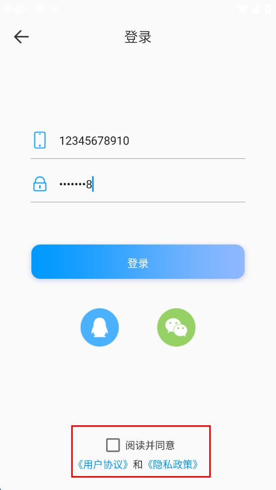 3、勾選閱讀并同意用戶協(xié)議和隱私政策。