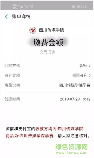 繳費(fèi)時(shí)請(qǐng)核對(duì),收款方為四川傳媒學(xué)院,商品為四川傳媒學(xué)院學(xué)費(fèi)。