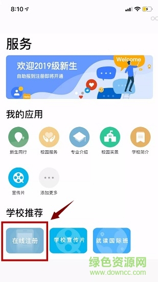 進(jìn)入APP后,可以在服務(wù)頁面中選擇相應(yīng)應(yīng)用,完成在線注冊(cè)等流程,國際學(xué)院無需線上注冊(cè),到校后現(xiàn)場(chǎng)辦理;