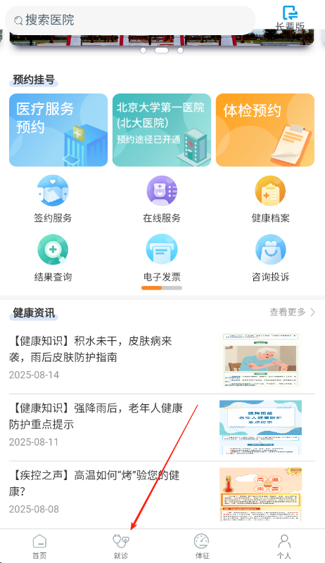1、開啟醫(yī)療APP進(jìn)入首頁,可使用搜索醫(yī)院功能查找所需醫(yī)療機(jī)構(gòu),點(diǎn)擊預(yù)約掛號板塊里的醫(yī)療服務(wù)預(yù)約等選項,按提示選擇科室醫(yī)生時間,完成掛號操作。