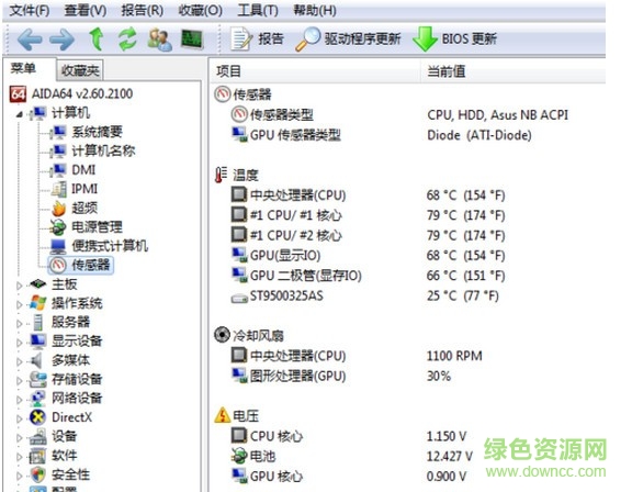 同樣是在“計算機”目錄下載,找到“傳感器”選項,打開傳感器就能看到本機CPU,硬盤,南橋的溫度數(shù)據(jù)。如果cpu溫度過高又降不下來,你就要看看是不是散熱出了問題,或者要考慮去維修店看看了。