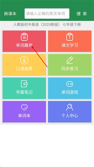 3、在功能界面點(diǎn)擊單詞趣背選項。