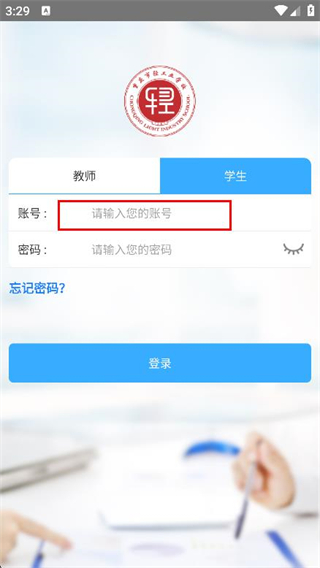 2、在登錄頁(yè)面,點(diǎn)擊輸入框,輸入需要登錄的學(xué)生賬號(hào)。