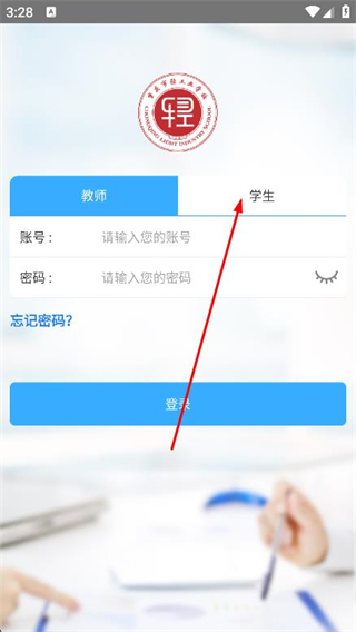 1、打開(kāi)重慶輕工校APP,在登錄頁(yè)面點(diǎn)擊上方的學(xué)生選項(xiàng)。