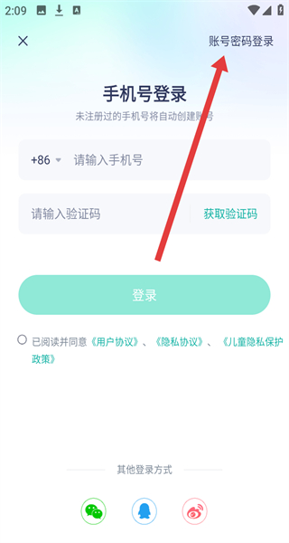 2、在登錄界面,點擊賬號密碼登錄選項,切換到賬號密碼登錄模式。