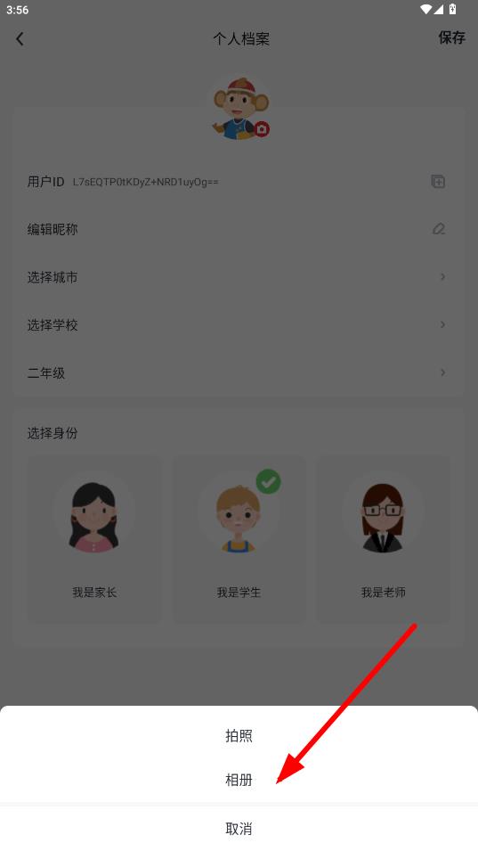 4、在彈出的選項中,點擊相冊,從相冊里選擇你想要設(shè)置為頭像的圖片,確認選擇后即可更換頭像。