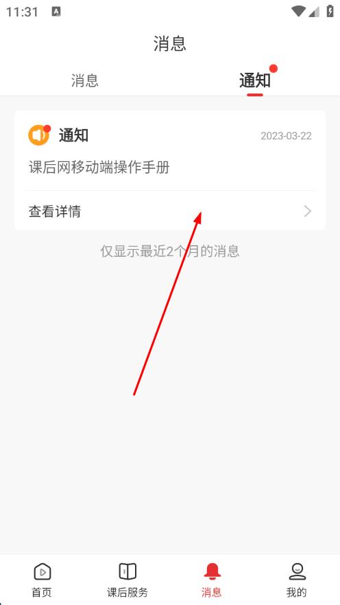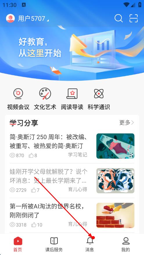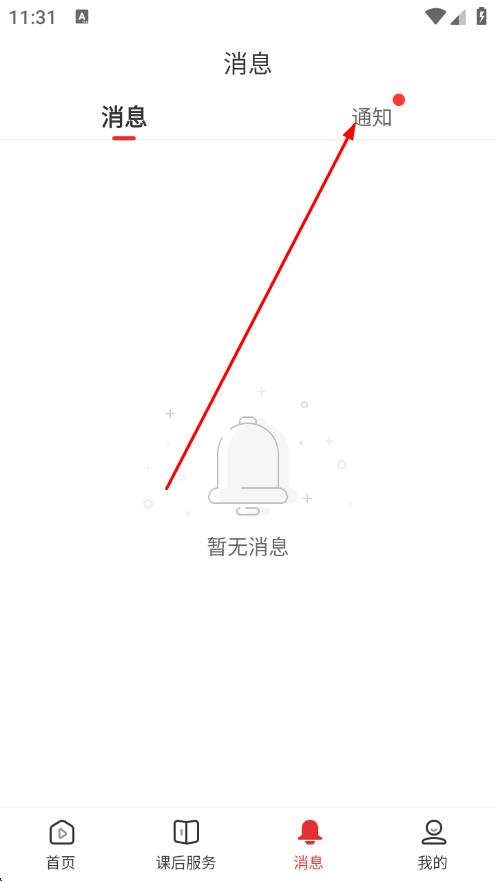 1、打開課后網(wǎng)App,點擊底部導航欄中的消息圖標。