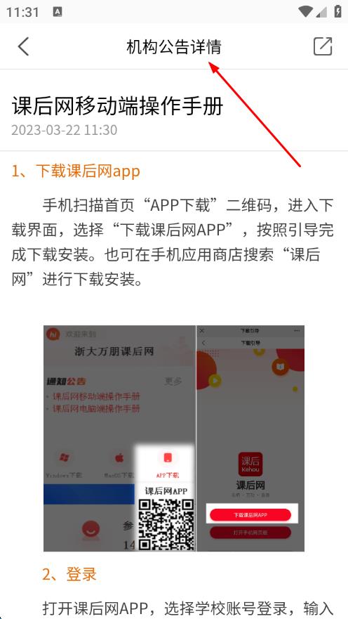 4、進入通知詳情頁面,即可查看該消息的具體內容。