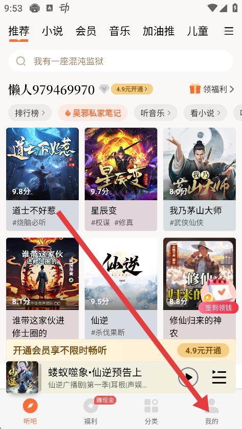 1、打開懶人暢聽,點擊底部導(dǎo)航欄中的我的選項。
