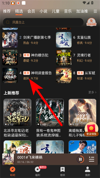 1、在懶人聽書首頁,選擇想聽的聽書內(nèi)容,進(jìn)入詳情頁面。