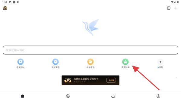 1、進入清理入口:打開迅雷APP主界面,點擊中間功能區(qū)的清理助手圖標,進入記錄管理頁面。