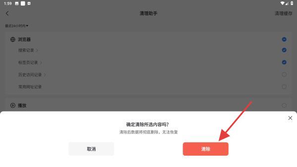 3、執(zhí)行清除操作:在彈出的確認提示框中,點擊清除按鈕,清除后記錄不可恢復(fù),需謹慎確認。
