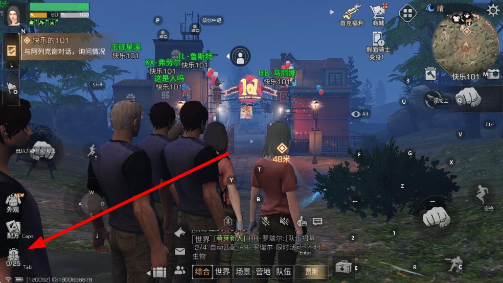 1、進入明日之后游戲,點擊屏幕左下角的背包圖標,打開背包界面。