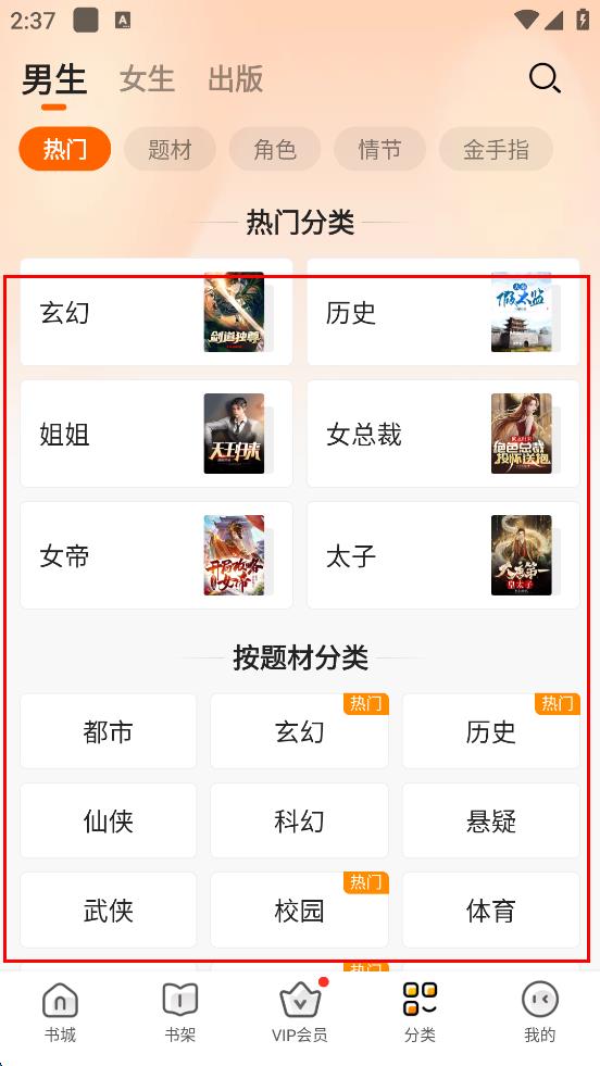 2、在分類頁面,找到“玄幻”分類選項,點擊該選項,進入玄幻小說列表頁面。