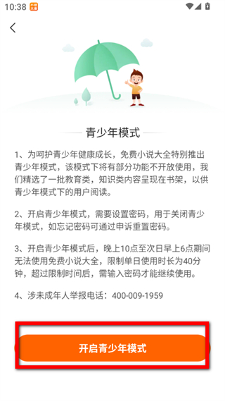 4、在青少年模式說明界面,點擊開啟青少年模式按鈕,即可開啟該模式。