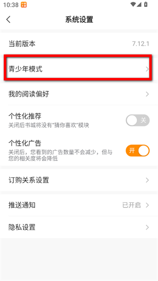 3、在系統(tǒng)設置頁面,點擊青少年模式選項,進入青少年模式說明界面。