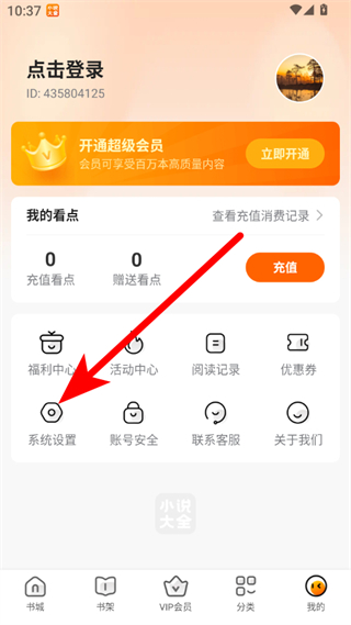 1、在小說大全書城頁面,點擊右下角我的選項,進入個人中心界面。
