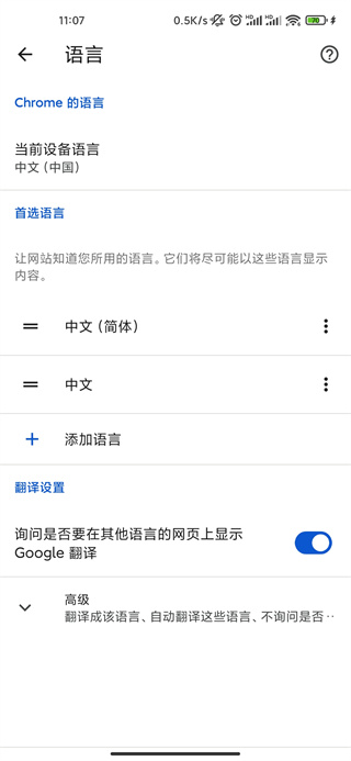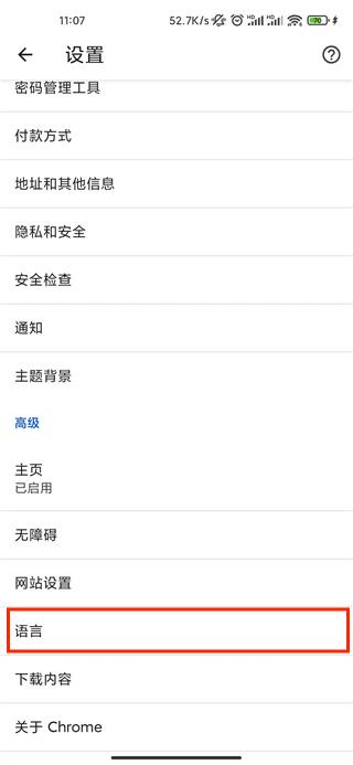3、在打開的設置欄下劃,找到【高級】-【語言】設置;