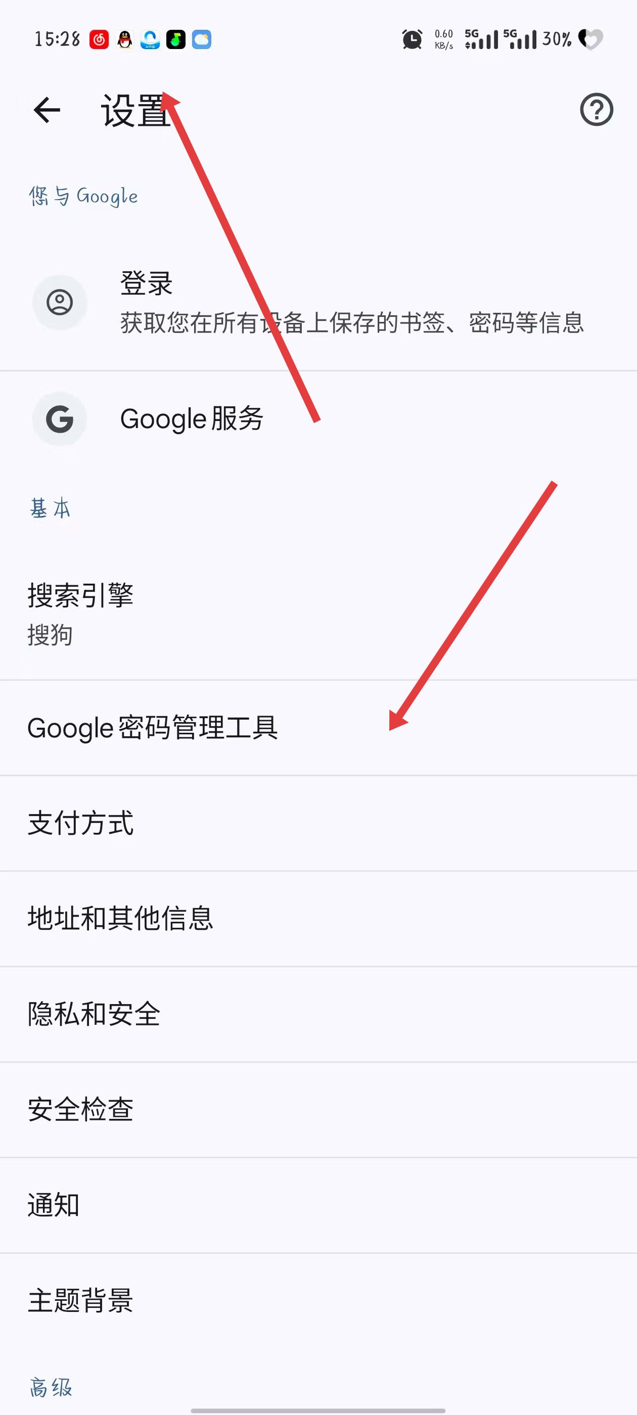 1、打開谷歌瀏覽器設置,點擊Google密碼管理工具。