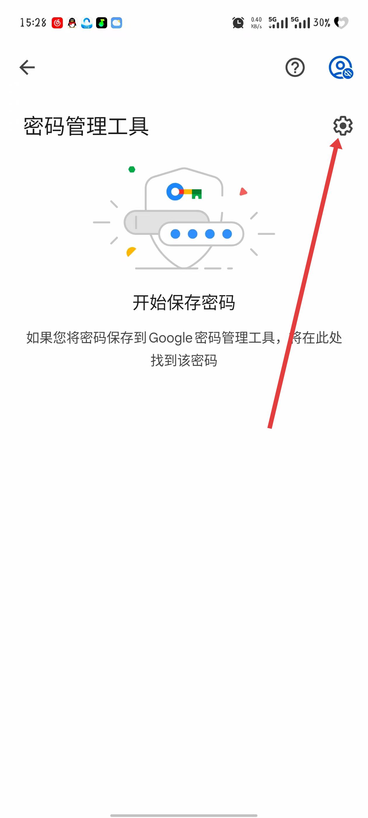 2、進入密碼管理工具,點擊右上角齒輪狀設置圖標。