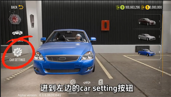 1、進(jìn)入車庫后,點(diǎn)擊“Car Setting”按鈕;