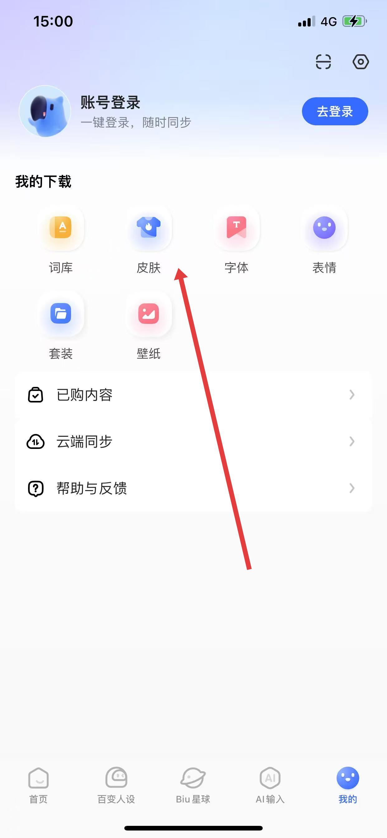 2、在我的頁(yè)面中,找到并點(diǎn)擊皮膚選項(xiàng),進(jìn)入我的皮膚頁(yè)面。