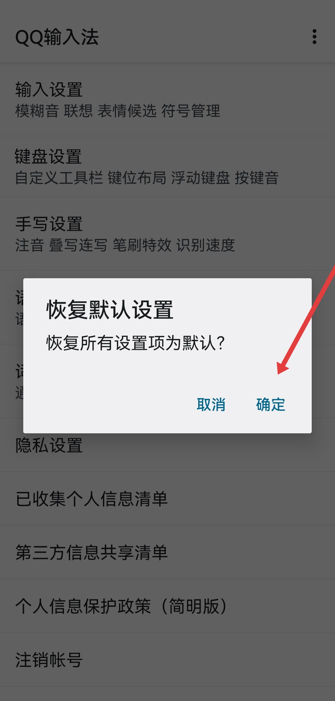 3、在恢復(fù)默認(rèn)設(shè)置確認(rèn)彈窗中,查看恢復(fù)所有設(shè)置項為默認(rèn)提示后,點擊確定按鈕,完成各項設(shè)置的初始化還原。