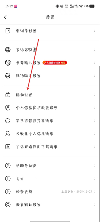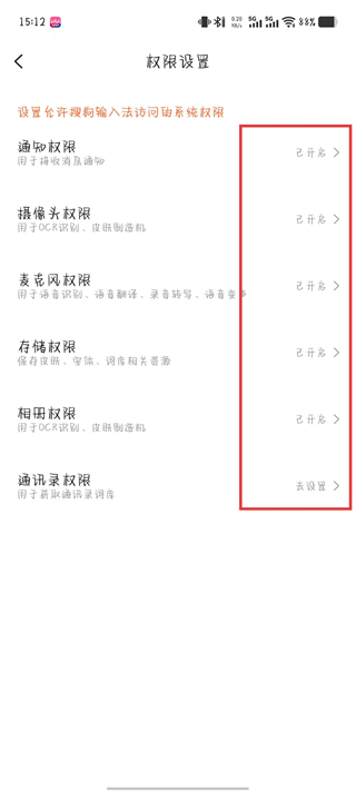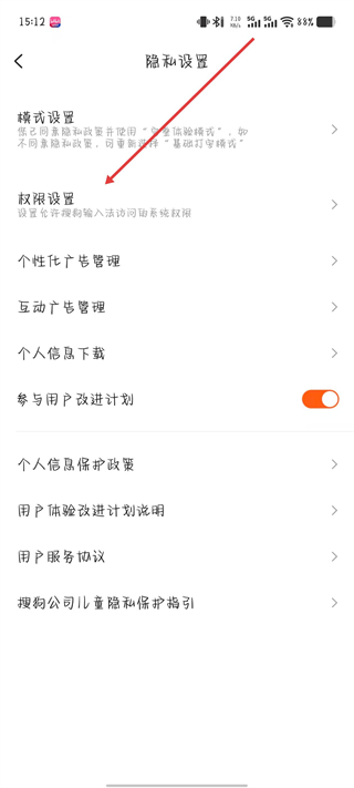 3、在隱私設置頁面,點擊權(quán)限設置選項。