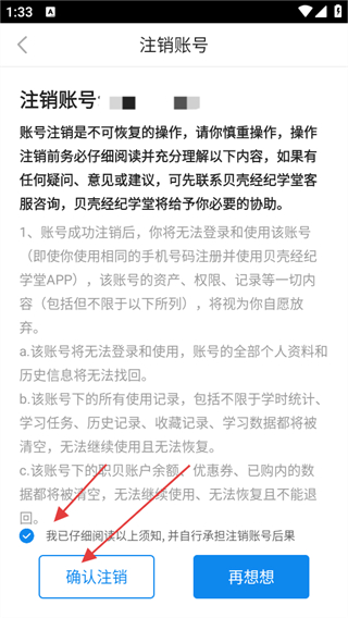 5、勾選我已仔細(xì)閱讀以上須知,點(diǎn)擊確認(rèn)注銷(xiāo)按鈕。