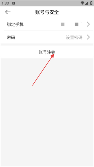 4、進(jìn)入賬號(hào)與安全頁(yè)面后,點(diǎn)擊賬號(hào)注銷(xiāo)選項(xiàng)。