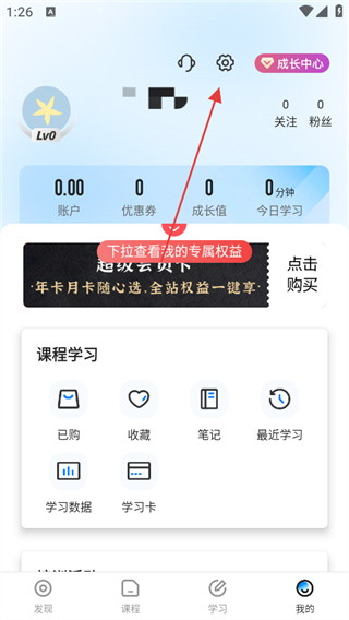 2、在我的頁(yè)面中,點(diǎn)擊右上角的設(shè)置齒輪圖標(biāo),進(jìn)入設(shè)置界面。
