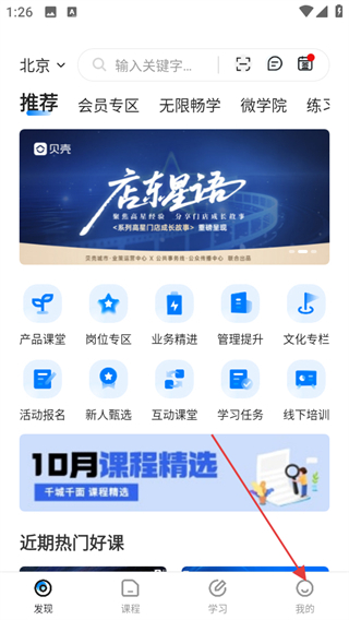 1、打開(kāi)貝殼經(jīng)紀(jì)學(xué)堂APP,點(diǎn)擊底部導(dǎo)航欄最右側(cè)的我的選項(xiàng)。