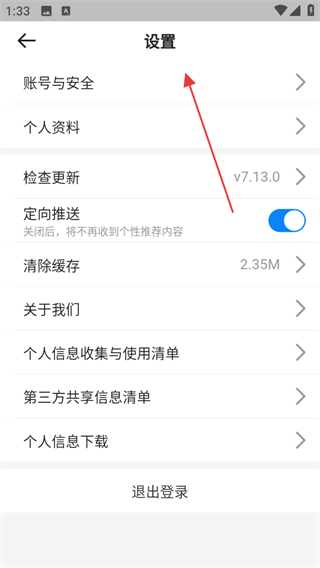 3、在設(shè)置界面里,點(diǎn)擊賬號(hào)與安全選項(xiàng)。
