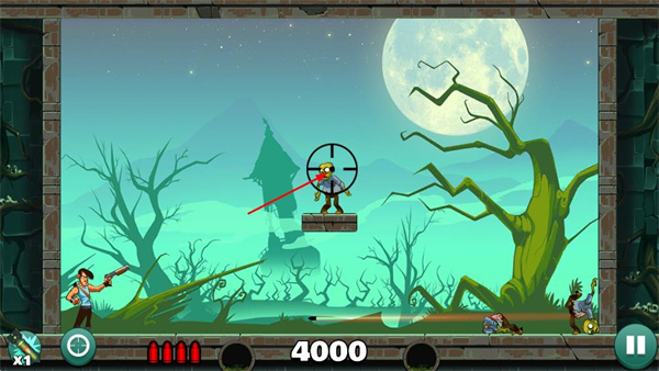 3、在關(guān)卡場景中,瞄準(zhǔn)出現(xiàn)的僵尸進行射擊,消滅目標(biāo)積累游戲分?jǐn)?shù)。
