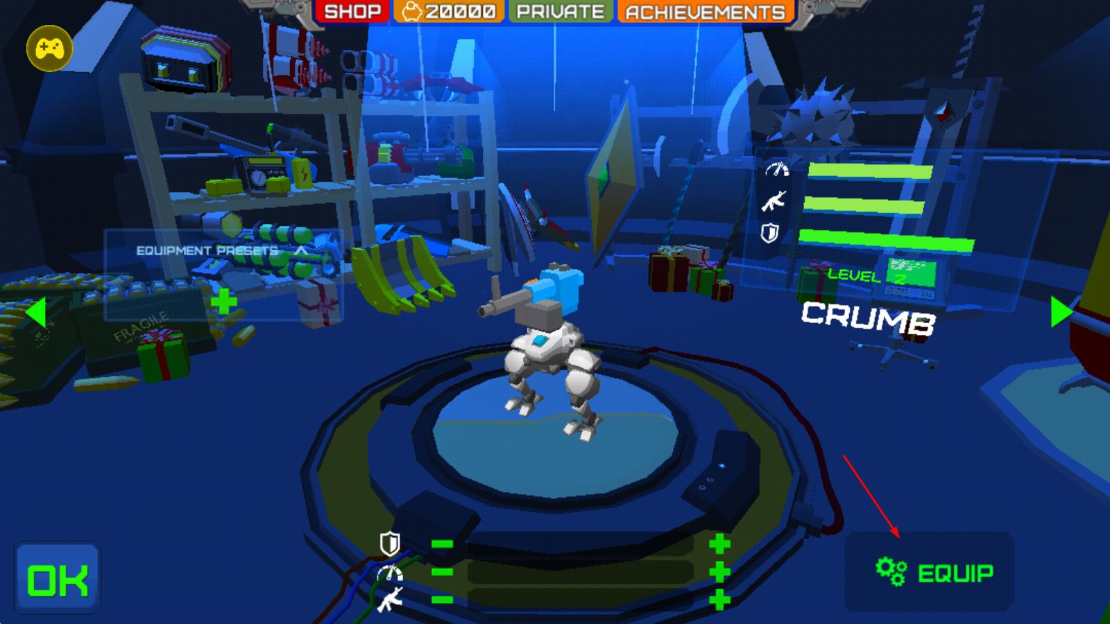 1、收集摧毀機(jī)器人的零件來組裝新的機(jī)器人;