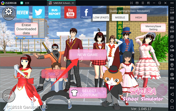 1、打開(kāi)櫻花模擬器游戲后,進(jìn)入游戲登錄界面,點(diǎn)擊界面上的new game即可開(kāi)始游戲;