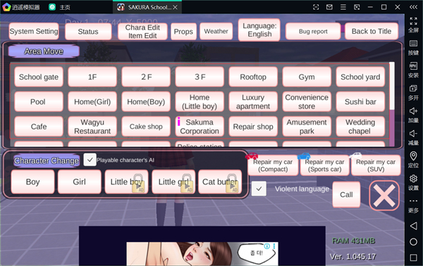 櫻花校園模擬器英文版高馬尾敞篷車(chē)新動(dòng)作大更新(sakura school simulator)游戲中,校園時(shí)期的我們總是擁有各種天馬行空的想法,還總是想著能如何完成自己這些不合邏輯的挑戰(zhàn),游戲最真實(shí)的模擬校園談戀愛(ài)的全過(guò)程,幫你輕松追到男神女神。